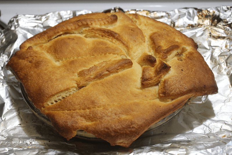 Just took a break from painting. My guys and the dog loved it. A chicken pot pie with sage bechamel sauce and crescent roll crust. I did not have any peas so I went out to the garden for something green. A whole handful of chopped sage in the sauce. Yum. Yum. My Sweetie just asked for the ipecac so he could eat more. Sweet guy. Back to the painting.